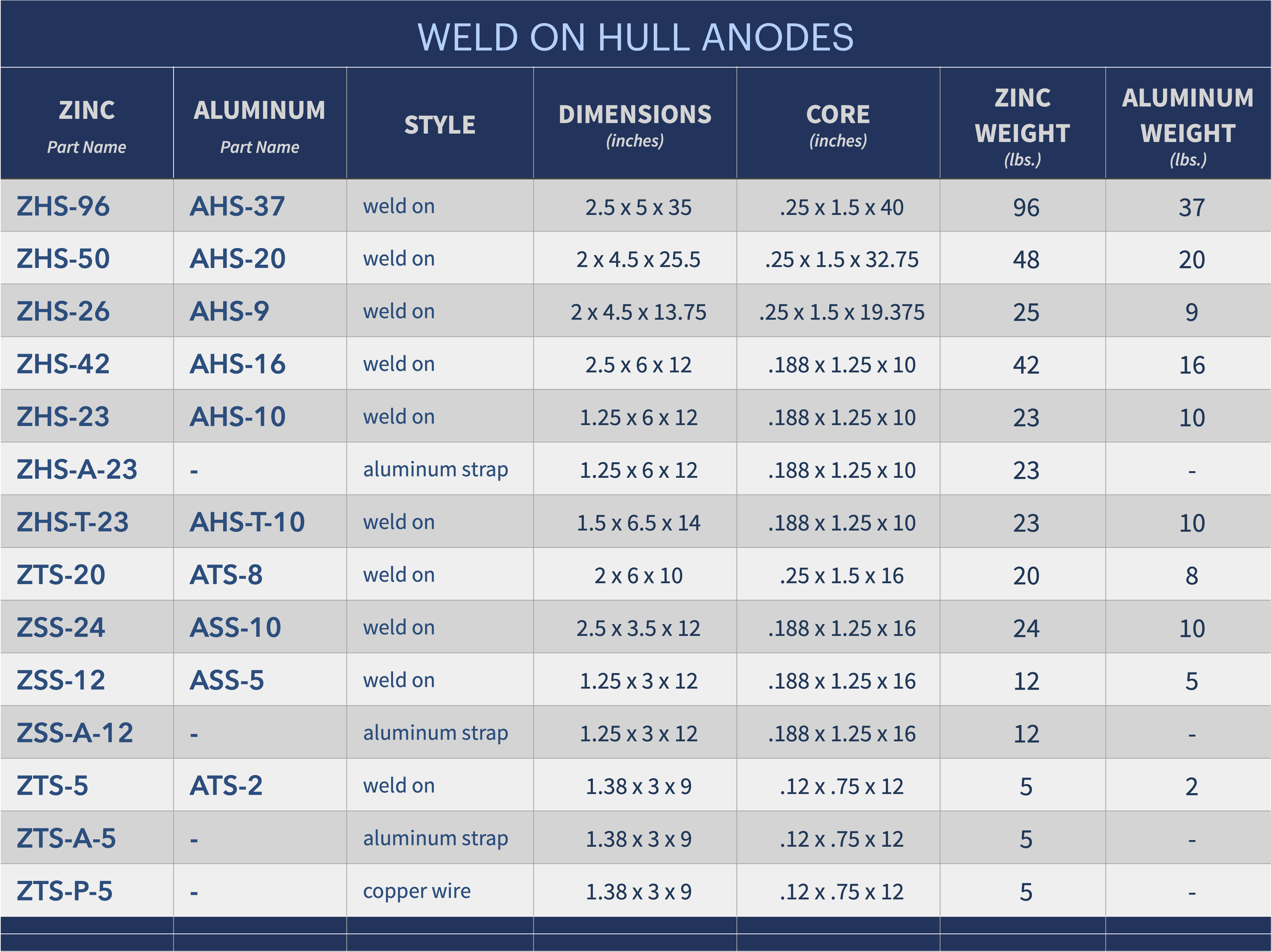 All Harbor Aluminum Anodes conform to alloy MIL-A-24779.